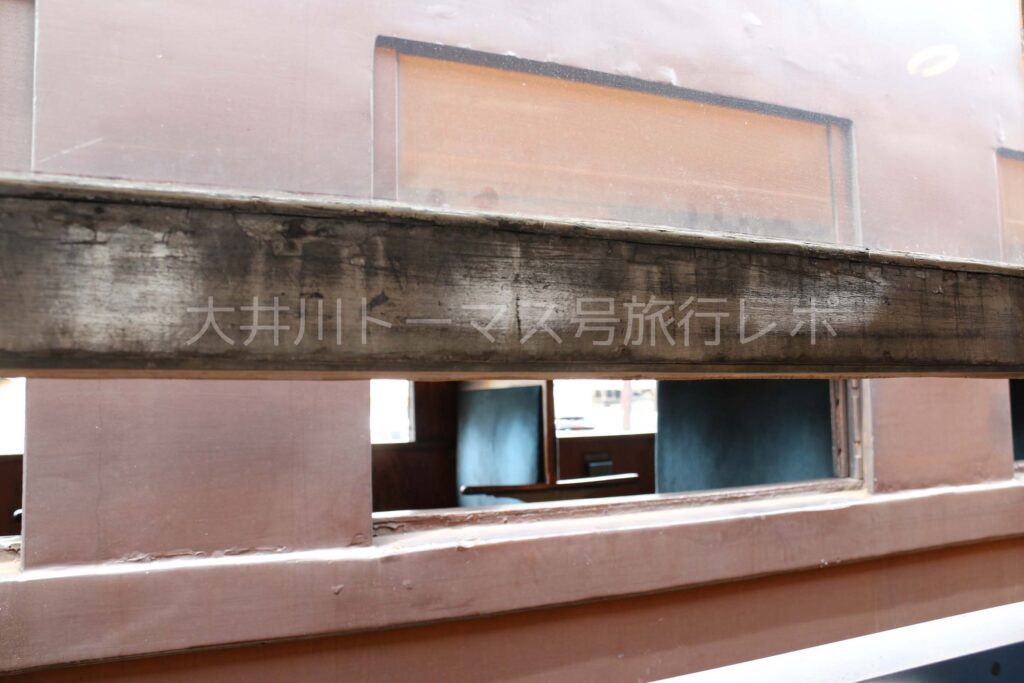 また、進行方向側の席にすわると、よりすすを浴びやすいので注意(夫の白いTシャツが犠牲に)