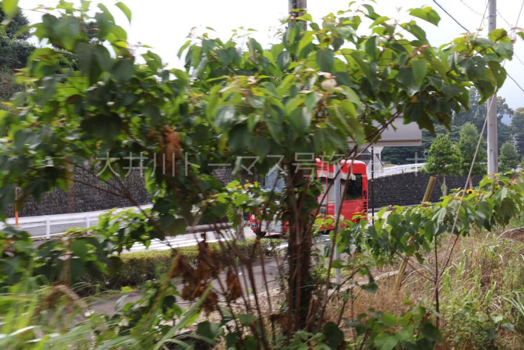 遠くのほうを赤い車が走っているのが見えるときもあれば、線路と道路が近い場所だと、間近見ることができて大興奮です!