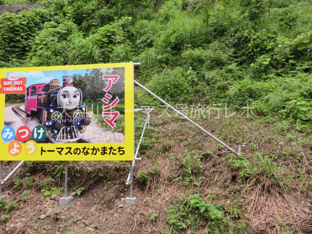 プレゼントでもらったミニガイドに、駅付近でトーマスの仲間たちの看板があらわれる箇所があります。